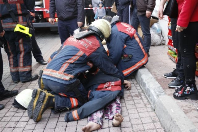Fatih'te bir evde çıkan yangında 3 küçük çocuğuyla mahsur kalan Suriyeli anne itfaiye ve sağlık ekiplerinin tüm müdahalesine rağmen kurtarılamadı. Fatih Karagümrük Mahallesi Melek Hoca Caddesinde bir evde sobadan kaynaklanan yangın çıktı. Yangında Suriyeli Nur Amori isimli anne ve çocukları Jud (2), Muhammed Hasan Amori'yi (6) ile iki aylık bebeği Juri mahsur kaldı. Çocuklar ve anne itfaiye ekiplerinin çabasıyla alevlerin arasından çıkarıldı. Ekipler tarafından caddeye yatırılarak kalp masajı yapılan anne Nur Amori hastaneye kaldırıldı. Talihiz kadın itfaiye ve sağlık ekiplerinin tüm müdahalesine rağmen kurtarılamadı. 3 çocuk annesi kadının ambulansta hastaneye götürüldüğü sırada hayatını kaybettiği öğrenildi.(Mehmet Altunışık /İHA)