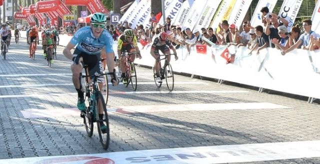 53. Cumhurbaşkanlığı Türkiye Bisiklet Turu'nun (Tour Of Turkey) 128.6 kilometrelik Spor-Toto Fethiye-Marmaris etabını Bora Hansgrohe takımından Sam Bennett 3 saat 25 dakika 25 saniye ile kazandı. Yarınki Spor Toto Marmaris-Selçuk etabında da Sam Bennett Turkuaz mayoyu giymeye devam edecek.FETHİYE'DEN START 13.30'DA VERİLDİ99 bisikletçi saat 13.30'da Fethiye Belediye binası önünden verilen startla 128.6 kilometrelik Marmaris etabına başladı. Startla birlikte hemen bir kaçış grubu oluştu. Önce Türk Milli Takımı'ndan Feritcan Samlı ile Trek-Segafredo Takımı'ndan Gregory Daniel ön grubu oluşturdu. Hemen arkalarından ise WB Veranclassıc Aquality Protect Takımı'ndan Thomas Deruette atak yaptı. Ancak bu bisikletçinin öndeki ikiliyi yakalaması ancak 9'uncu kilometrede mümkün olabildi. Parkur yakıcı bir güneş altında cereyan etti. Rüzgar ise hemen hemen hiç yok denecek azdı. Bu üçlü önce arayı 2 dakika 5 saniye, ardından 3 dakika 56 saniye kadar açtı. Bu üçlüye ise daha sonra Soul Brasıl Pro Cyling Takımı'ndan Lincoln Silva dahil olmaya çalıştı. 13'üncü kilometre bu şekilde geçildi. Ana grubun içinde Türk Milli Takımı 7 sporcu ile, Turkuaz mayoyu taşıyan Bora Hansgrohe Takımı'ndan Sam Bennett de bulunuyordu. Yeni zaman farkı ise 5 dakika 28 saniye olarak ölçüldü. 18'inci kilometrede ise Lincoln Silva tam grubu yakalarken lastik patlatınca şanssız anlar geçirdi fakat değişme yapıldıktan sonra büyük bir efor sarf ederek gruba yetişmeye çalıştı. Bu sporcunun kaçış grubunu yakalayabilmesi için 4 dakikalık zaman farkını kapatması gerekiyordu. Yine kaçış grubu ile ana grubun arasındaki zaman farkı ise 6 dakika 10 saniyeye kadar çıktı. Etabın 24'üncü kilometresinde Göçek geçilirken halkın büyük ilgisi bisikletçilere ayrı bir moral kaynağı oldu.BU ETAPTA TARİHE GEÇEN İSİMLERBiraz geriye dönüp bakıldığında bu etapta en yüksek hıza ulaşan bisikletçiler arasında şu isimleri görmek mümkün. Daryl Impey (2009), Giovanni Visconti (2010), Manuel Belletti (2011), Mark Renshaw (2012), Andre Greipel (2013 & 15), Mark Cavendish (2015), Sacha Modolo (2016). Tour Of Turkey'i koşan bu ünlü isimler ayrıca tura damgasını vuran isimler olarak hep plana çıkmışlardı. Bu etapta ise Soul Brasil Pro Cyling Takımı'ndan Lincoln Silva kaçış grubuna dahil olmak için çaba sarf ederken, temposu düşünce ana gruba yakalandı.32.9 kilometre geçilirken etabın ilk prim kapısı da geride bırakıldı. Türk Hava Yolları'nın sponsorluğunda gerçekleşen tırmanış priminin ilk derecelerini şu bisikletçiler aldı:1- WB Veranclassic Aqualıty Protect Takımı'ndan Thomas Deruette, 2- Türk Milli Takım'ından Feritcan Samlı, 3- Trek-Segafredo Takımı'ndan Gregory Daniel, 4- Bardiani CSF Takımı'ndan Mirco Maestri.Bu sonuçlardan sonra yarın koşulacak Spor - Toto Marmaris - Selçuk etabında Türk Hava Yolları Tırmanış mayosu olan (Dağların Kralı) Kırmızı tişörtü Mirco Maestri'nin giymesi kesinleşti.50'inci kilometre geçilirken sıcaklık epey tavan yaptı. Buna rağmen tempo çok yavaş değildi. Öndeki grup ile ana grubun arası 5 dakika 8 saniye olarak verildi. Dalyan kavşağındaki kalabalık bir izleyici grubunun alkışlarla ay-yıldızlı bayrakları sallaması Tur'a olan ilgiyi bu etapta tavan yaptırdı. Beyobası, Zeytinalanı, Yangı ve Köyceğiz girişine kadar olan yokuş aşağı iniş de sorunsuz tamamlandı. Bisikletçiler burada zaman zaman 100 kilometrenin üzerine çıkarak adeta gövde gösterisi yaptı. Bundan sonra öndeki üçlü kaçış grubu ile ana grubun arasındaki zaman farkının kapanmaya başlaması dikkat çekti. Yeni zaman 4 dakika 10 saniye olarak ölçüldü. Bu arada ana grubun saatte 45 kilometre hızla pedal bastığı bilgisi geldi.Toparlar geride bırakılırken etabında 72'inci kilometresi tamamlanıyordu. Burada gerçekleşen Salcano Sprint primini Türk Milli Takımı'ndan Feritcan Samlı kazandı. İkinciliği WB Veranclassic Aquality Protect Takımı'ndan Thomas Deruette, üçüncülüğü de elde etti. BEYAZ MAYO ONUR BALKAN'DA KALDIBu sonuçlara rağmen Vestel Türkiye Güzellikleri Mayosu (Beyaz Mayo) yine Türk Milli Takımı'ndan Onur Balkan'da kaldı. Onur yarınki etapta da Beyaz mayoyu taşıyacak. Prim kapısı geçilirken Trek-Segafredo Takımı'ndan Gregory Danıel atak yaptı ve kaçış grubunun önüne geçti geride ikiliye 1 dakika 6 saniye fark yaptı. Bu esnada ana gruptan üç bisikletçi daha atak yaptı fakat fazla gidemediler. Finişe 20 kilometre kala kaçış grubundaki ikili, ana gruba yakalandı. Önde tek giden Gregory'de daha sonra ana grupla birleşti. Son 10 kilometreye girilirken Marmaris'te yine bir toplu finiş beklenmeye başlandı. Son 1 kilometreye kadar saklanan Bora Hansgrohe takımından Sam Bennett, 200 metre kala yine atağa kalkarak klasını ortaya koydu ve etabı birinci bitirdi.(Vural Efecik /İHA)