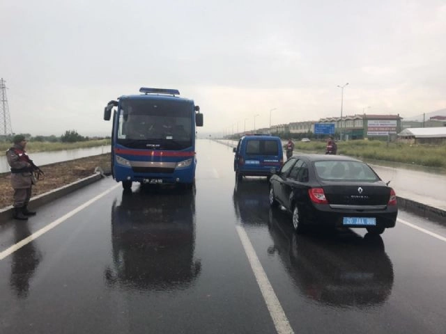 Bursa'dan Muğla'nın Fethiye ilçesine Fetullahçı Terör Örgütü/Paralel Devlet Yapılanması kapsamında tutuklu yargılanan sanıkları taşıyan cezaevinin ring aracı, Denizli'nin Serinhisar ilçesinin çıkışında kaza yaptı. Kazada araçta maddi hasar meydana geldi. Edinilen bilgilere göre, FETÖ/PDY'nin Bursa'daki yapılanması kapsamında tutuklu yargılana 26 kişi 3 cezaevi aracıyla eskortlar eşliğinde Muğla'nın Fethiye ilçesine nakil için yola çıktı. Araçlardan 16 JTA 99 plakalı resmi aracın yağış nedeniyle kayganlaşan yolda spin attı. Kaza yapan araç kayarak, refüjden karşı şeride geçip yolda ters durdu. Kazayı, yolda devriye giden jandarma gördü. Haber verilmesi üzerine takviye jandarma ekibi sevk edildi.FETÖ'cü tutuklu sanıkları taşıyan diğer araçlar, eskortlar halinde yola devam etti. Kaza yapan ceza evi aracındaki sanıklar, Denizli Cezaevinden getirilen araca nakil edildi. Nakilin ardından sanıkları taşıyan araç, eskortlar eşliğinde Fethiye cezaevine gönderildi.Kaza yapan araçtaki arızanın giderilmesi için ilçeden tamirci çağrıldı.(Medeni Topaloğlu /İHA)