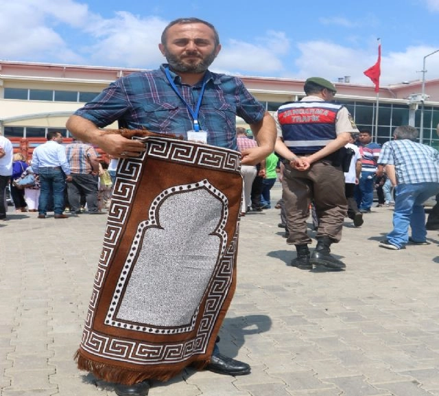15 Temmuz darbe gecesinde Harp Akademileri Komutanlığındaki faaliyetlere ilişkin Silivri'de görülen davayı takip eden 15 Temmuz gazisi Murat Yapar, FETÖ elebaşı Fetullah Gülen'in seccadeye ayağıyla bastığı fotoğrafa atıfta bulunarak mahkemeye seccadesiyle geldi. Yapar, "Biz seccadeye ayakkabılarımız ile basmıyor. Alnımızı koyuyoruz" dedi. İstanbul 26. Ağır Ceza Mahkemesi'nde 15 Temmuz gecesi Harp Akademileri Komutanlığındaki darbe girişimi faaliyetlerine ilişkin davasında sanık ifadelerinin dinlenilmesine devam edildi. Davayı darbeye karşı koyarken, 15 Temmuz Şehitleri Köprüsü'nde gazi olan Murat Yapar da takip etti. Arnavutköy Belediye Başkanı Ahmet Haşim Baltacı ile duruşmayı takip eden gazi çıkışta yanında getirdiği seccadenin nedenini açıkladı.Terör örgütü FETÖ'nün elebaşı Fetullah Gülen'in ayakkabıları ile seccadeye bastığı fotoğrafa atıfta bulunan Gazi Murat Yapar, sanıkların tiyatro oynadığını söyleyerek, "Hep tiyatro oynuyorlar. Yalan söylüyorlar savunma yaparken. Biz hakkımızı adil savunamıyoruz diyorlar. Ben FETÖ'nun fotoğrafını izledim baktım ayakkabısı ile basıyor seccadeye. Dini savunan bir adam bu kadar hain olabiliyor. Ben de buna istinaden buraya seccademi getirdim. Biz bu seccadeye ayakkabılarımız ile basmıyoruz. Alnımızı koyuyoruz" dedi.(Murat Delice - Ufuk Kıvık /İHA)