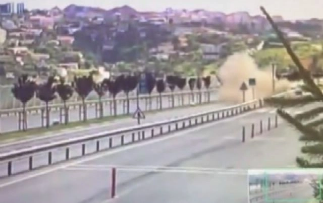 İstanbul Beykoz'da direksiyon hakimiyetini kaybeden araç bariyerlere çarparak takla attı. Kazada sürücü ve yanındaki bir kişi yaralanırken, olay anı ise güvenlik kameralarına saniye saniye yansıdı. Aksiyon filmlerini aratmayacak kaza, önceki gün Beykoz Çubuklu Mahallesinde meydana geldi. Edinilen bilgiye göre, direksiyon hakimiyetini kaybeden bir araç bariyerlere çarptıktan sonra takla attı. Aracın içerisinde bulunan 2 kişi kendi imkanları ile araçtan çıkarken sağlık durumlarının iyi olduğu öğrenildi. ARACIN TAKLA ATMA ANI KAMERADAOlay anı ise bir sitenin güvenlik kamerası tarafından saniye saniye kaydedildi. Güvenlik kamerasının kaydettiği görüntülerde, hızla gelen aracın yolun sağ tarafında bulunan bariyerlere çarptığı görülüyor. Aracın bariyerlere çarpmasının ardından takla atması ve büyük bir toz bulutunun çıkması da güvenlik kamerasına yansıyor.(Zafer Peker/İHA)