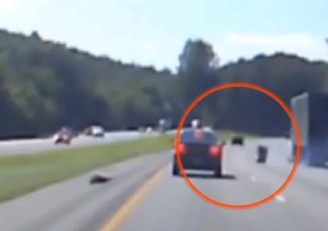 Fırlayan lastiğe bakarken önündeki araca çarptı. Amerika Birleşik Devleti'nde sağ şeritteki bir kamyonun lastiği çıkarak yola savruldu. Bunun üzerine sol şeritteki otomobil frene bastı. Arkasındaki araç bunu fark ettiğindeyse çok geçti. Kamyonun fırlayan lastiğine bakan sürücü önündeki araca çarparken kaza ve bu sırada araç içinde yaşanan panik araç kamerasınca kaydedildi.