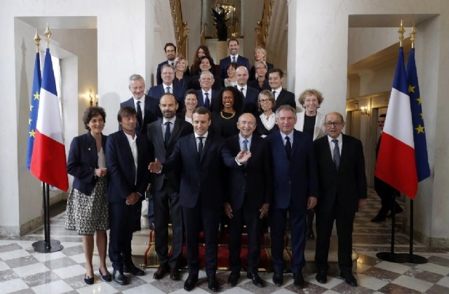 Fransa'da yeni kabine bugün ilk toplantısını Elysee Sarayı'nda gerçekleştirdi. Fransa Cumhurbaşkanı Emmanuel Macron, başbakanlık görevini verdiği Edouard Philippe'nin sunduğu yeni kabineyi onaylamıştı. 11 kadın ve 11 erkek bakandan oluşan kabine bugün ilk kez toplandı. Toplantıda, Cumhurbaşkanı Macron, İçişleri Bakanı Gerard Collomb ve Adalet Bakanı François Bayrou arasına oturdu. Kabinede Hollande hükümetindeki tek tanıdık yüz Dışişleri Bakanı Jean- Yves Le Drian oldu. Kabine basına poz vermeyi de ihmal etmedi.