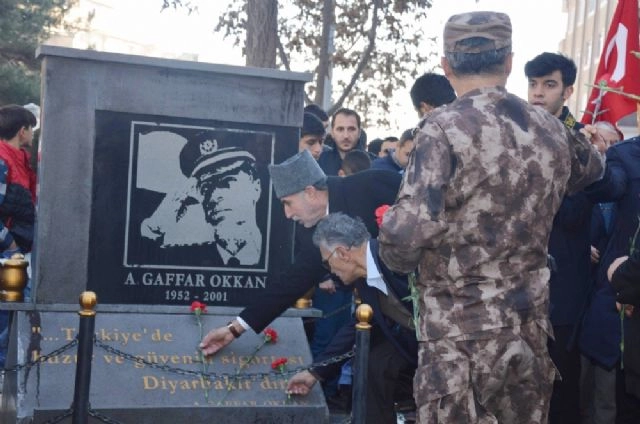 Diyarbakır'da 2001 yılında saldırıya uğrayarak şehit düşen Emniyet Müdürü Ali Gaffar Okkan ve beraberindeki 5 polis memuru, şehit edildikleri caddede düzenlenen törenle anıldı.