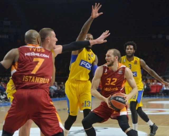 THY Euroleague'in 19. haftasında Galatasaray Odeabank, sahasında ağırladığı Maccabi Fox'u 102-63 mağlup etti. Sarı-kırmızılılar bu sonuçla Euroleague'deki 6. galibiyetini aldı.KÜNYESalon: Abdi İpekçiHakemler: Damir Javor xx, Miguel Perez xx, Clemens Fritz xxGalatasaray Odeabank: Micov xxx 16, Fitipaldo xx 8, Tyus xxx 18, Can x, Schilb xx 10, Pleiss xxx 16, Daye xx 5, Sinan xx 8, Diebler xxxx 21, Göksenin xxBaşantrenör: Ergin AtamanMaccabi FOX: Goudelock xxx 22, Rudd xx 5, Seeley x, Smith xx 6, Mekel xx 4, Pnini xx 4, Ohayon xx 2, Weems xxx 12, Landesberg x, Alexander x, Iverson xx 8Başantrenör: Ainars Bagatskis1. Periyot: 20-16 (Galatasaray Odeabank lehine)Devre: 52-39 (Galatasaray Odeabank lehine)3. Periyot:72- 52 (Galatasaray Odeabank lehine)