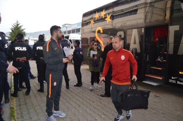 Galatasaray, Süper Lig'in 25. haftasında yarın deplasmanda karşılaşacağı Trabzonspor maçı için bugün saat 17.10 sıralarında özel bir uçakla Trabzon'a geldi. Sarı-kırmızılı kafilede sakatlıkları devam eden Chedjou, Hakan Balta ile Eren Derdiyok yer almazken, kafile yoğun güvenlik önlemleri altında kamp yapacakları otele geçti.