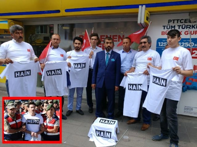 Muğla'da FETÖ'nün 'suikast timi'nde yer alan bir darbecinin 'Hero'(Kahraman) yazılı tişörtle duruşmaya katılmasına tepki gösteren 15 Temmuz Gazileri Platformu, tişörtlerin üzerine 'Hain' yazarak, cezaevleri müdürlüğüne gönderdi.