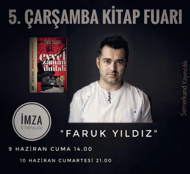 Genç yazar Faruk Yıldız, kaleme aldığı ödüllü tarihi romanı "Evvel Zaman İhtilali"yle imza gününde kitapseverlerle buluşacak.Başarılı yazar Faruk Yıldız, 5. Çarşamba Kitap Fuarı'nda okurlarıyla buluşacak. 9 Haziran Cuma saat 14.00'da ve 10 Haziran Cumartesi saat 21.00'da kitapseverlere bir araya gelecek olan genç yazar Yıldız, başarılı yapıtı "Evvel Zaman İhtilali"ni edebiyat meraklıları için imzalayacak. Bugünü anlamanın, tarihi anlamaktan geçtiğine inananlara hitap eden ve Eşik Yayınlarından çıkan "Evvel Zaman İhtilali" yakın zamanda raflardaki yerini almıştı.