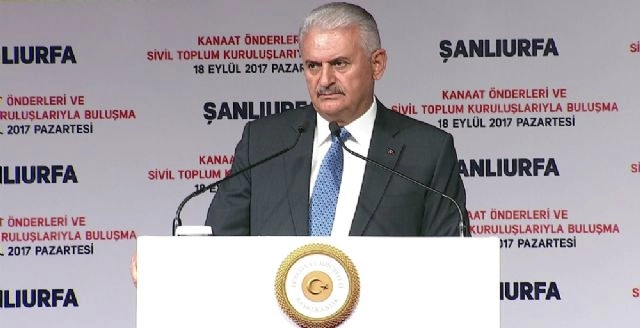 Başbakan Binali Yıldırım, "Gerek Suriye'de gerek Irak'ta yapay devlet olmaya çalışanlar şunu iyi bilsinler; ulusal güvenliğimizi tehdit edecek, içeride ve dışarıda her türlü girişim gerekli karşılığı anında görecektir" dedi.Başbakan Yıldırım, Şanlıurfa'da kanaat önderleri ve sivil toplum kuruluşlarının temsilcileriyle buluştu. Programda konuşan Yıldırım, 25 Eylül'de bağımsızlık referandumu yapmaya hazırlanan Irak Kürt Bölgesel Yönetimine bir kez daha uyarılarda bulundu. Yıldırım, "Gerek Suriye'de gerek Irak'ta birtakım hayaller peşinde olanlar, burada yapay devlet olmaya çalışanlar şunu iyi bilsinler; ulusal güvenliğimizi tehdit edecek, içeride ve dışarıda her türlü girişim gerekli karşılığı anında görecektir. Bunu herkesin kafasına koyması lazım. Hiç kimse güney sınırlarımızda, Irak'ta, Suriye'de 'oldu bitti'lerle iş çevirmeye kalkmasın. Türkiye bu konuda kararlıdır, gerekli uyarılar yapılmıştır. Eğer bunun karşılığı görülmezse gerekli tedbirleri almaktan zerre kadar çekinmeyeceğiz" ifadelerini kullandı.KILIÇDAROĞLU'NU DA ELEŞTİRDİYıldırım'ın hedefinde, Avrupa'ya Türkiye'de can ve mal güvenliği olmadığı şikayetinde bulunan Kemal Kılıçdaroğlu da vardı. Başbakan, Avrupa Basketbol Şampiyonası için Türkiye'ye Slovenya'dan Sırbistan'dan 20 bin seyirci geldiğini hatırlatarak, "Ülkemizi kötülemekle, yabancılara şikayet etmekle vatanseverlik olmaz. Ana muhalefet demek, iktidar alternatifi demektir. Ne vaat edeceksen onları söyle. Boş işlerle uğraşmaya lüzum yok. Bir koluna bölücüleri bir koluna FETÖ'cüleri alarak sokakları arşınlamakla hiçbir şey olmaz" diye konuştu.