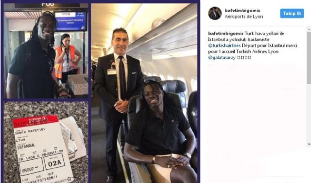 Galatasaray'ın yeni golcüsü Bafetimbi Gomis, İstanbul'a gelmek için uçağa bindi. Sarı-kırmızılıların transfer görüşmelerine başlandığını açıkladığı Fransız futbolcu Bafetimbi Gomis, sosyal medya hesabından uçağa bindiği fotoğrafı paylaştı. Lyon'dan İstanbul'a gelen yıldız futbolcu, fotoğrafın altına, "İstanbul'a yolculuk başlamıştır" notunu ekledi. Golcü futbolcu bugün saat 16.00 sıralarında İstanbul'da olacak.(Oğuzhan Ort / İHA)