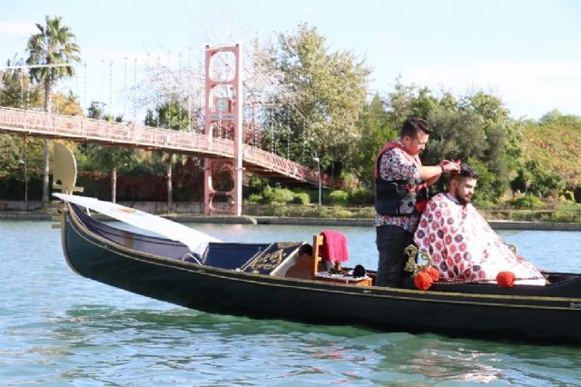 Adana'da farklı bir deneyim yaşamak isteyen kuaför ve müşterisinin Seyhan Nehri'nde kiraladıkları gondolda yaptıkları tıraş keyfi, renkli görüntüler oluşturdu.
