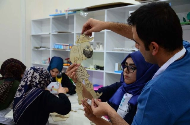 Muş Alparslan Üniversitesi (MŞÜ) Okulöncesi Eğitimi Anabilim Dalı tarafından yürütülen projeyle Hacivat-Karagöz tasvirleri, öğrencilerin ellerinde şekilleniyor.