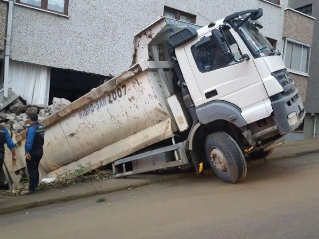 Trabzon'un Ortahisar ilçesinde hafriyat kamyonu geri kayarak bir evin duvarını yıktı.Edinilen bilgiye göre, Ortahisar ilçesinin 2'nolu Beşirli Mahallesi'nde, İsmail Ç. yönetimindeki 06 BF 7659 hafriyat yüklü kamyonun rampadan tırmanırken önüne bir otomobil çıktı. Rampa nedeniyle tekrar hareket etmeye çalışan kamyon, kasasında bulunan hafriyatla birlikte kalkamayınca geri kayarak bir evin duvarını yıktı. Kazada ölen ya da yaralanan olmazken olayla ilgili soruşturma başlatıldı.