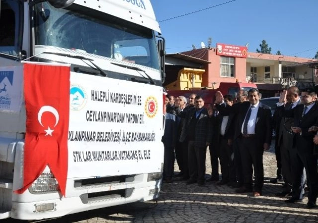 Ceylanpınar Belediyesi ile Ceylanpınar Kaymakamlığı tarafından başlatılan Halepli Muhacirlere Yardım kampanyası kapsamında toplanan yardım malzemeleri törenle uğurlandı.