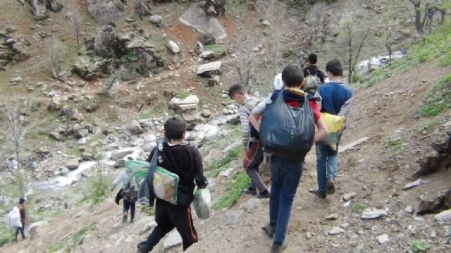 Şırnak'ın Beytüşşebap ilçesinde bir grup öğrenci, pancar bitkisi toplayabilmek için hayatlarını riske atıyor. Öğrenciler, her yıl bahar aylarında azgın Habur Çayı ve dik kayalıkları aşıp pancar topluyor.