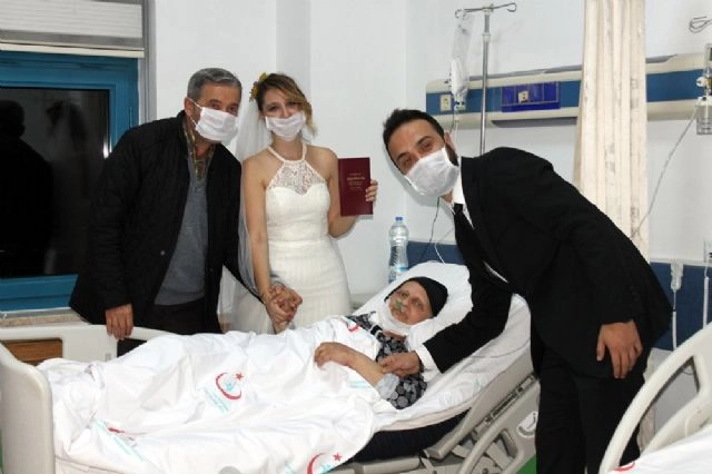Yalova'da bir çift, kanser hastası olan genç kadının annesine moral olsun diye hastane odasında nikah kıydı. Kanser hastası anne, nikahı yattığı yerden yaşlı gözlerle izledi.