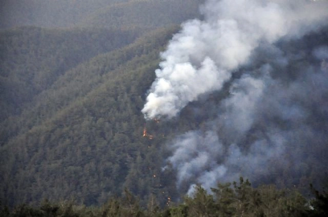 Hatay'ın Dörtyol ilçesinde çıkan orman yangını 2 gündür devam ediyor. Söndürme ekipleri yangını kontrol almak için havadan ve karadan çalışmaları aralıksız sürdürüyor.Dörtyol ilçe kırsalı Amanos Dağları eteklerinde bulunan Çökek Yaylası mevkisi Beşikgöl bölgesinde başlayan orman yangını iki gündür devam ediyor. Yangını kontrol altına almak için orman yangını söndürme ekipleri yoğun çaba sarf ediyor.Kahramanmaraş Orman Bölge Müdürlüğü Yangınla Mücadele Şube Müdürü Muzaffer Ketmen, söndürme çalışmalarına karadan 25 arazöz, 4 dozer, 1 greyder olmak üzere 9 yer ekibinden oluşan 150 personelin katıldığını, 2 uçak ve 5 yangın söndürme helikopterleri ile de havadan müdahale edildiğini söyledi. Yangının kuzey ve güney bölgelerinin tutulduğunu belirten Ketmen, doğu batı istikametinde eğimli ve kayalık derin dereler olması nedeniyle alevlere güçlükle müdahale edebildiklerini vurguladı.Yangının ilk günü akşam saatlerine kadar söndürme çalışmalarına katılan uçak ve helikopterler havanın kararmasıyla birlikte söndürme çalışmalarına ara verirken yangının ikinci günü sabahın erken saatlerinde çalışmalar yeniden başlatıldı.Gece boyunca karadan kontrol altına alınmaya çalışılan yangında yaklaşık 50 hektar ormanlık alanın zarar gördüğü belirtildi. (Necati İvgin/İHA)