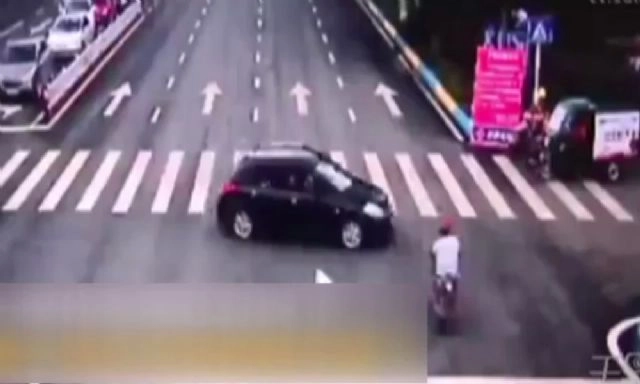 Çin'de inanılmaz bir kaza gerçekleşti. Seyir halindeki motosikletli dönüş yapan otomobille çarpıştı.