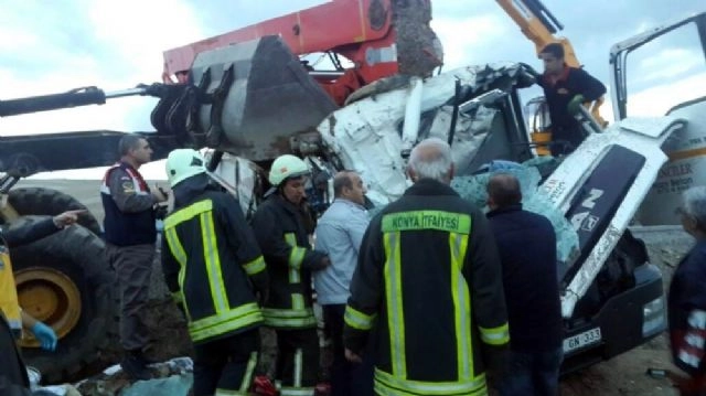 Konya'nın Cihanbeyli ilçesinde kontrolden çıkan hazır beton pompa vincinin şarampole devrilmesi sonucu meydana gelen trafik kazasında 1 kişi hayatını kaybetti, 1 kişi yaralandı.