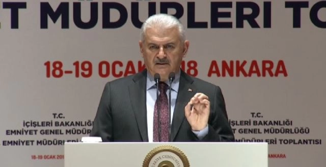 Başbakan Binali Yıldırım, Suriye'deki gelişmelere işaret ederek, "Uluslararası hukuktan kaynaklanan ve milletimizin can ve mal güvenliğini esas alan, hudutlarımızın güvenliğini esas alan her türlü tedbir hiç ama hiç rehavete kapılmadan hemen alınacaktır" dedi. Başbakan Binali Yıldırım, KOM Daire Başkanlığında gerçekleştirilen İl Emniyet Müdürleri toplantısında konuştu. Uyuşturucu ile mücadele konusuna değinen Yıldırım, "Terör örgütleriyle mücadele ederken aynı zamanda sosyal dokumuzu tahrip etmek isteyen uyuşturucu baronlarını da ihmal etmiyorsunuz. Şunu hatırımızda tutalım, terörle mücadelede yurdun her karış toprağında amansız mücadelede önemli mesafe alındı. Ancak, uyuşturucu bizim mücadele etmekle beraber boyutları düşündüğümüzden daha derinde ve daha büyük olan mücadele şeklindedir. Bundan sonraki öncelikli hedefleriniz arasında genç kuşakları zehirlemeyi, toplumu yozlaştırmayı, ülkemizin enerjisi olan gençlerimizi bu müptelaya düşürmeye çalışanlara asla ve asla göz açtırmayın. Büyük şehirlerde, okullar etrafında, insanların toplu olarak bulunduğu mekanlarda uyuşturucu baronlarının maşaları, dağıtıcıları gençlerimizi zehirlemek adına alçakça bir faaliyet içindeler. Başlattığınız uyuşturucuya karşı mücadele takdirle karşılanıyor ancak yeterli değil. Bu konuda çok daha amansız bir mücadele sürecini mutlaka ve mutlaka başlatmak gerektiğini düşünüyorum. Tıpkı terörle mücadelede olduğu gibi burada da teşkilatımızın çok iyi sonuçlar alacağına inanıyorum" ifadelerini kullandı.Vatandaş ile devlet arasındaki ilişkiye 'asayiş ve güvenlik' kadar önem gösterilmesi gerektiğine dikkati çeken Yıldırım, asıl olanın 'vatandaş' olduğunu ifade etti. Yıldırım, "Sizlere sonunu kadar güveniyoruz, her türlü desteği veriyoruz, vermeye devam edeceğiz. Sizleri haktan, hukuktan, hakkaniyetten ayırmasın" dedi.Etrafta yaşanan olayların dikkatle izlendiğini anlatan Yıldırım, 15 yıldır en büyük mücadelenin teröre karşı verildiğini dile getirdi. Bu konuda ortaya konulan mücadelenin çok büyük olduğunu anlatan Başbakan Yıldırım, "Bugün Türkiye'de terör birinci gündem maddesi olarak konuşulmuyor, başka konular ön plana çıktı. Ancak, henüz işimiz bitmiş değil. Su uyur, düşman uyumaz. Gece gündüz, yaz kış demeden mutlaka ve mutlaka taarruz esaslı, savunma esaslı değil mücadele kesintisiz devam edeceğiz. Özellikle de tehdidin terör olayının gerçekleşmeden önce önlenmesine yönelik çalışmalara ağırlık vereceğiz. Yüzlerce terör olayını gerçekleşmeden önlediniz. Bunun arkasında sağlam bir istihbarat var. Birimler arasında koordinasyon var. Birbirinden bilgi esirgememe var. Bunlar olunca operasyonlar, operasyon öncesi başarılar da kendiliğinden geliyor. Yani, geçmiş zamanların birimler, kurumlar arasındaki zayıf iletişimin bugün yerini çok daha iyi koordine edilmiş ve birbirleriyle her an iletişim halinde olan güvenlik birimlerinin olması bu başarıda en önemli imkanımızdır" diye konuştu.Yurt içinde güvenliği sağlamanın esas olduğunu ama yetmediğini kaydeden Yıldırım, "Sınır güvenliği önemli. Terör unsurlarının sınırlarımızı geçerek içeride terör faaliyetine girişmesinin önüne geçecek tedbirleri alıyoruz. Bütün elektronik uyarı sistemleri, gözetleme kuleleri vesaire bunları da büyük oranda tamamlayamadık ama yüzde 60'ların üzerinde bir sonuç elde ettik. Süratle kalan kısımları tamamlayacağız. Terörle mücadeledeki kararlılığımızı bütün dünya ülkelerinin açık ve net olarak görmesini istiyoruz. Türkiye'nin yaptığı terörle mücadele aslında Avrupa'nın da güvenliğini sağlıyor. Özellikle Suriye'de DEAŞ'tan temizlenen alanların başka terör örgütüyle doldurulmasını asla kabul edemeyiz. Amerika'nın Suriye'deki uygulamaları, müttefiklik hukukuna terstir, yanlıştır. Amerika, bölgenin geleceği konusundaki kafa karışıklığını kaldırmalı. Tavrını Türkiye ile hukukunu düzeltmekten yana kullanmalıdır" açıklamasında bulundu.Yıldırım, "Uluslararası hukuktan kaynaklanan ve milletimizin can ve mal güvenliğini esas alan, hudutlarımızın güvenliğini esas alan her türlü tedbir hiç ama hiç rehavete kapılmadan hemen alınacaktır" dedi. (Enise Vural - İlker Turak/İHA)