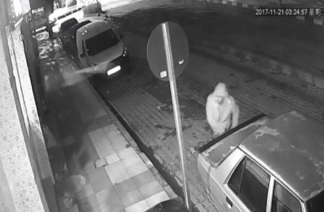 Manisa'da özel bir sürücü kursunun camına taş atarak içeri girmeye çalışan hırsızı fark eden duyarlı komşu, balkondan aşağıdaki şüpheliye patates atarak kovaladı.Olay, sabaha karşı saat 04.30 sıralarında Manisa'nın Şehzadeler ilçesine bağlı Peker Mahallesi'nde meydana geldi. Edinilen bilgiye göre, henüz kimliği belirlenemeyen hırsızlık şüphelisi cadde üzerindeki özel bir sürücü kursu etrafında keşif yaptı. İçerideki malzemelere bakan şüpheli daha sonra eline taş alarak cama attı. İlk denemede camı kıramayan şüpheli daha sonra yeniden cama büyük bir taş atarak kırmaya çalıştı. Dışarıdan gürültülerin geldiğini fark eden bir komşu ise balkona çıkarak duruma baktı. Balkondan şüphelinin cama taş attığını gören komşu, önce hırsıza bağırdı daha sonra balkonda bulunan patateslerden bir tanesini şüpheliye fırlattı. Hırsız bağırışların ardından kaçmaya çalıştığı esnada duyarlı komşu tarafından atılan patates sırtına isabet etti. Şahıs olay yerinden kaçarak uzaklaşırken, olayı gören komşular hemen durumu polis ekiplerine haber verdi. Yaşanan olay ise güvenlik kameraları tarafından saniye saniye kaydedildi.Güvenlik kameralarından yola çıkan Manisa İl Emniyet Müdürlüğüne bağlı ekipler her yerde şüpheliyi arıyor.(Aykut Yeniçağ / İHA)