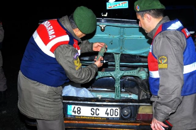 Türkiye genelinde Jandarma ve Emniyet ekiplerinin genel 'Huzur' operasyonlarında Muğla İl Jandarma Komutanlığı Menteşe İlçe Jandarma ekipleri Marmaris yolu üzerindeki uygulamada Hz. İsa figürlü haç objesi ve gözyaşı kâsesi ele geçirdi. Menteşe-Marmaris karayolu 10. Kilometrede uygulama yapan Menteşe İlçe Jandarma ekipleri 48 SC 456 plakalı aracı durdu. Aracın bagaj bölümünde yapılan aramada çuval içine sarılı vaziyette 77x52,5 ebadında Bronz olduğu değerlendirilen Hz. İsa figürlü Haç obje ve gözyaşı kâsesi ele geçirdi. Araç içinde bulunan H.D. E.Y. A.B. ve M.A. isimli şüpheliler jandarma tarafından gözaltına alındı.Ele geçirilen 4 objenin tarihi değerinin olup olmadığı Müze Müdürlüğü yetkililerinin incelemesi sonrası ortaya çıkacak. Jandarma ekipleri ele geçirilen ve tarihi eser olduğu tahmin edilen eserlere el koydu.Olayla ilgili olarak Nöbetçi Cumhuriyet Savcılığına verilen bilgi sonrası 4 şahıs şüpheli sıfatıyla ifadelerinin alınmasından sonra serbest bırakıldı.(Bekir Tosun / İHA)