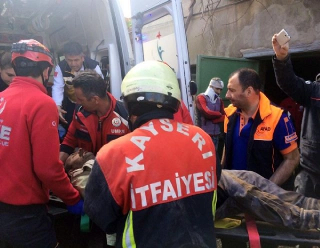 Kayseri'de iki katlı bir evde meydana gelen göçükte 1 kişi hayatını kaybetti, 5 kişi de yaralandı. Melikgazi ilçesi Yeşilyurt Mahallesi Çamlıyayla Sokakta bulunan iki katlı bir evde meydana gelen göçükte Seyithan K. (44) hayatını kaybetti. Hadin Y., Zeki G., Mustafa S., İbrahim K. ve Cengiz K. ise yaralandı. Yaralılar olay yerine gelen AFAD, İtfaiye ve Jandarma ekipleri tarafından göçük altından çıkarılarak Kayseri Eğitim ve Araştırma Hastanesi ile Erciyes Üniversitesi Tıp Fakültesine kaldırıldı.(Turan Bulut/İHA)