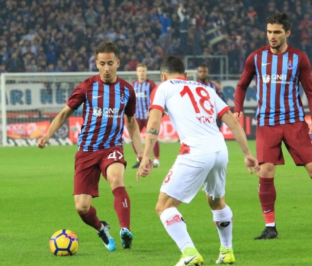 Süper Lig'in 14. haftasında Trabzonspor ile Antalyaspor karşılaştı. Müsabakanın ilk yarısı ev sahibi Trabzonspor'un 1-0'lık üstünlüğü ile sonuçlandı. Maçtan dakikalar (İlk yarı)27. dakikada omuzundan sakatlanan Durica'nın yerine Mas oyuna dahil oldu.38. dakikada hızlı gelişen Antalyaspor atağından Celustka'nın yerden pasında ceza sahası yayı üzerinde gelişine vuran Deniz Kadah'ın şutu Okay'dan geri döndü.41. dakikada Onazi'nin pasında ceza sahası yayı üzerinde topla buluşan Burak Yılmaz'ın aşırtma vuruşunda meşin yuvarlak kaleci Ferhnat'ın üzerinden ağalarla buluştu. 1-0Stat: Medicap Park StadyumuHakemler: Yaşar Kemal Uğurlu xx, Serkan Çimen xx, Samet Çiçek xxTrabzonspor: Onur x, Pereira xx, Hubocan xx, Durica x (Mas dk. 27 x), Mustafa Akbaş x, Okay xx, Onazi xx, Yusuf Yazıcı x, Castillo x, Burak Yılmaz xx, N'Doye xYedekler: Esteban, Kalim Ahmet Çörekçi, Bongonda, Volkan Şen, Olcay Şahan, Abdulkadir Ömür, Bero, Rodallefga, KuckaTeknik Direktör: Rıza ÇalımbayAntalyaspor: Ferhat x, Diego xx, Chico xx, Sakıp xx, Celustka xx, Charles x, Vaingueur x, Yekta Kurtuluş x, Maicon x, Eto'o x, Deniz Kadah xYedekler: Boffin, Ozan, Yusuf Çelik, Nazım Sangare, El Kabir, Aydın Karabulut, Harun, Emre GüralTeknik Direktör: LeonardoGol: Burak Yılmaz (dk. 41) (Trabzonspor)Sarı kart: Pereira (Trabzonspor)(Gökmen Şahin /İHA)