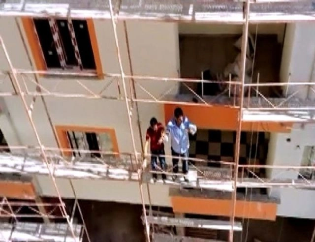 Adıyaman'ın Gölbaşı ilçesinde bir binanın dış cephesine kurulan iskele üzerinde işçiler halay çekti. Görüntüler, Gölbaşı ilçesi Fatih Mahallesi'nde kaydedildi. Yedi katlı binanın dış cephesine kurulan iskelede çalışan işçiler müzik eşliğinde halay çekti. Metrelerce yükseklikte tehlikeye aldırış etmeden çekilen halay diğer işçiler tarafından ilgi ile izlendi. Halay çeken iki işçi diğer işçileri de yanlarına çağırdı. Yaşananlar tehlikeye davetiye çıkardı.(Kürşat Aktaş /İHA)