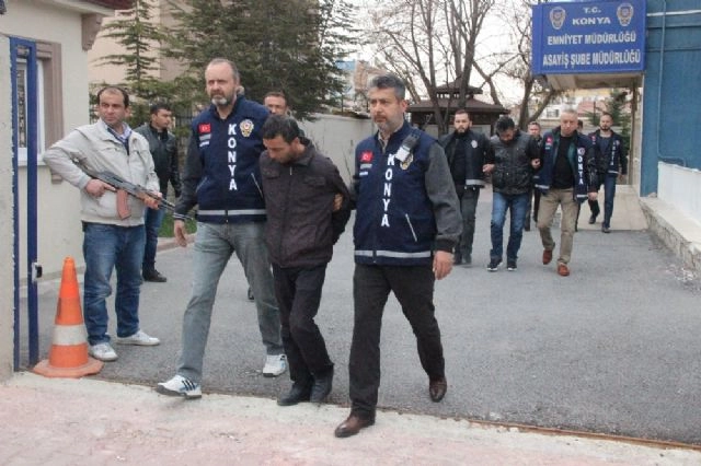 Konya'da 16 yıl önce tabancayla vurularak öldürüldükten sonra yol kenarında cesedi bulunan Ali Ergün'ün katil zanlısı 4 kişi yakalandı.Edinilen bilgiye göre, Konya'nın Ilgın ilçesinde 16 yıl önce 41 yaşındayken öldürülüp yol kenarına atılan müteahhit Ali Ergün'ün katilleri bulunamamıştı. O dönem faili meçhul olarak kapatılan cinayet dosyası Asayiş Şube Müdürlüğü Cinayet Büro Amirliği ekipleri tarafından tekrar açıldı. Ali Ergün'ün katil zanlılarını yakalamak için çalışma başlatan ekipler, 16 yıl önce olayın gerçekleştiği yerin yakınlarında bulunan bir otelin şantiyesinde çalışan işçilerin SSK kayıtlarını incelemeye aldı. Yapılan araştırmanın ardından o yıllarda otel inşaatında çalışanlar tespit edildi. 16 yıl önce çalışanlarla görüşen polis ekipleri, cinayetin işlendiği 23 nisan 2001 yılında işçilerden Deniz B., (33) Soner S., (35) Halil V., (40) ve Ramazan S.'nin (37) olayın hemen ardından işi bırakarak eşyalarını bile yanlarına almadan ilçeden ayrıldığını tespit etti. Bunun üzerine cinayet şüphelilerinin bu şahıslar olabileceği ihtimali üzerinde duran polis, şüpheliler ile ilgili gerekli bilgi ve delili topladı. Elde edilen bilgiler doğrultusunda şüphelilerden Deniz B. ve Soner S. Zonguldak'ta, Halil V. İstanbul'da, Ramazan S. de Manisa'da yakalanarak Konya'ya getirildi.LÜKS OTOMOBİLE BİNEN İŞ ADAMINI ZENGİN SANIP KAÇIRMIŞLARGözaltına alınan şüphelilerin ifadesinde şantiyede çalıştıkları esnada, şantiyeye maaşların ödenmesine yakın gelen toplu parayı çalmayı planladıklarını söyledikleri öne sürüldü. Şüphelilerin toplu parayı çalamayınca bulundukları yerden tesadüfen geçen lüks bir otomobilde bulunan Ali Ergün'ün aracına silah zoruyla bindikleri öğrenildi. Şüphelilerin Ali Ergün'ü silah zoruyla Ankara yolunun 32. kilometresine kadar götürdükleri ve iş adamında para istedikleri ileri sürüldü. Şüphelilerin parasının olmadığını söyleyen Ali Ergün'ü yakınlarını aratarak para istemesi konusunda tehdit ettiği öğrenildi. İş adamının yakınlarından da paralarının olmadığı cevabı gelmesi üzerine şüpheliler, tartıştıkları işadamı Ali Ergün'ü iki ayrı tabancayla 6 yerinden vurarak öldürdükleri ortaya çıktı. Şüphelilerin cinayetin ardından iş adamı üzerinde bulunan cep telefonunu ve bir miktar parasını alarak olay yerinden kaçtıkları belirlendi."EZAN İLE GELDİK, SELA İLE GİDERİZ"Para karşılığı tetikçilik yaptığı öğrenilen Deniz B.'nin Konya'daki cinayeti ardından Zonguldak'a kaçtığı ve burada da kendisine iş verip parasını ödemediği iddia edilen Ahmet Kavak'ı ve resmi nikahsız yaşadığı Ayşe Akça ile çocukları 6 aylık Tufan ile 4 yaşındaki Süheyda Kavak'ı öldürmekten cezaevinde 14 yıl yattığı öğrenildi. Deniz B.'nin cezaevinde olduğu süre içerisinde tahliye olacağı gün Konya'da işlediği cinayet yüzünden tekrar gözaltına alınarak hapse gireceği korkusuyla yaşadığını söylediği öne sürüldü. Ayrıca şüpheli Deniz B.'nin gözaltına alındığı esnada polis ekiplerine hangi suçtan almaya geldiklerini sorduğu öğrenilirken, sela okunması üzerine ise "Ezan ile geldik, Sela ile gideriz" dediği ileri sürüldü. Şüpheliler, Deniz B., Soner S., Halil V. ve Ramazan S. çıkarıldıkları mahkemece tutuklanarak cezaevine gönderildi. (Mustafa Beşer - Uğur Sarı / İHA)