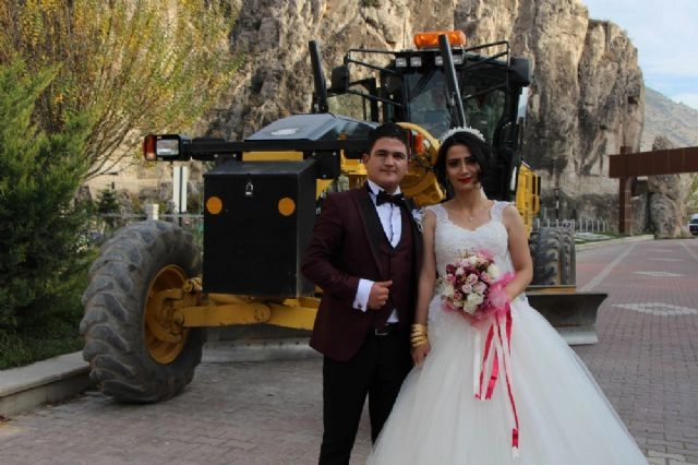 Amasya'da iş makinesi operatörü damat, ekmek teknesini gelin arabası yaptı.Mesleğe başladıktan sonra evleneceği gün greyderini gelin arabası yapma hayali kuran Bekir Can, bu hayalini gerçeğe dönüştürdü. 26 yaşındaki Can, gelin almaya önüne Türk bayrağı asıp süslediği 6 yıldır operatörlüğünü yaptığı greyderle gitti. Alışılmış bir gelin aracı yerine sarı renkli dev greyderi karşısında gören gelin Duygu Demir bir süre şaşırdıktan sonra damatla birlikte greyderin kabinine bindi. Çiçeği burnunda çiftin içindeki greyder çalan davul-zurna eşliğinde ailelerinin yaşadığı Kayabaşı köyünde mutluluklarını paylaşan yakınlarının oluşturduğu araç konvoyuna öncülük etti.Gelin arabası olan greyderi görenlerin duruma şaşırdığını anlatan Bekir Can, "Eşime sürpriz yapıp ekmek teknem greyderi gelin aracına dönüştürdüm. Bu benim hayalimdi. Hayalimi gerçekleştirdim. Çok da güzel oldu" dedi.Ferhat ile Şirin Aşıklar Müzesindeki fotoğraf çekimlerinin ardından greyder kullanımındaki hünerlerini sergileyen damat daha sonra eşiyle birlikte ikinci gelin arabaları olan otomobile binip düğünlerinin yapılacağı salona geçti.(Murat Çelik /İHA)