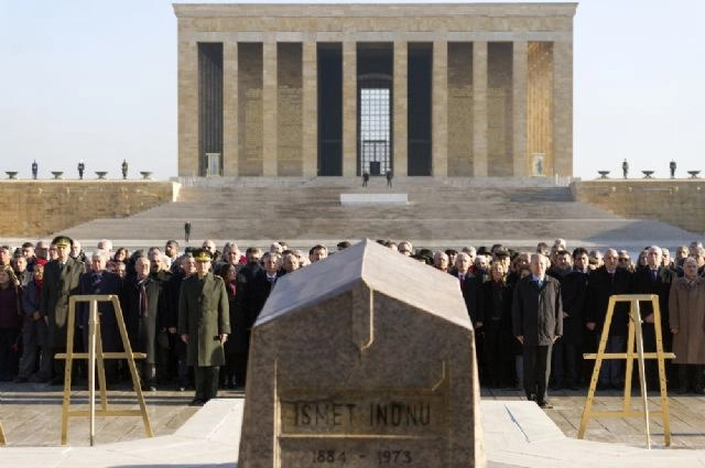 İkinci Cumhurbaşkanı İsmet İnönü, vefatının 44'üncü yıl dönümünde Anıtkabir'de düzenlenen törenle anıldı.Vefatının 44'üncü yılında İkinci Cumhurbaşkanı İsmet İnönü için Anıtkabir'de anma töreni düzenlendi. Törende Cumhurbaşkanlığını temsilen Cumhurbaşkanlığı Genel Sekreter Yardımcısı Nadir Alpaslan, Başbakanlığı temsilen Gümrük ve Ticaret Bakanı Bülent Tüfenkci, Genelkurmay 2. Başkanı Ümit Dündar, CHP Genel Başkanı Kemal Kılıçdaroğlu ve CHP'li vekiller de yer aldı. Atatürk'ün mozolesine çelenk koyma ve saygı duruşunda bulunulmasının ardından, heyet İnönü'nün Anıtkabir'deki mezarı başına geçti. İnönü'nün öz geçmişinin okunmasının ardından çelenk sunumu gerçekleştirildi. Heyet resmi törenin ardından İnönü ailesine başsağlığı dileklerini sundu.