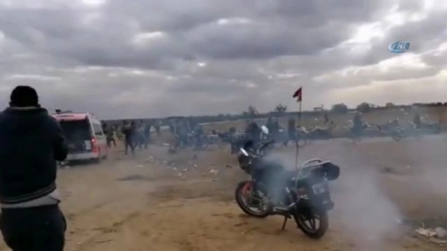 İsrail güçlerinin ABD Başkanı Donald Trump'ın Kudüs kararını protesto eden Filistinlilere müdahalesi sırasında 30 kişi yaralandı. ABD Başkanı Donald Trump'ın Kudüs'ü İsrail'in başkenti olarak tanımasının ardından Filistin'in Gazze şeridi Batı Şeria ve Kudüs'te protestolar devam ediyor. Gazze Şeridi'nin güneyindeki Han Yunus şehrindeki gösterilerde, İsrail güçlerinin protestoculara gerçek mermilerle müdahale ettiği belirtildi. İsrail askerlerinin göstericilere müdahale sırasında 30 kişinin yalandığı belirtilirken yaralılardan birinin durumunun ağır olduğu bildirildi.Hamas Siyasi Büro Başkanı İsmail Heniyye, Gazze'deki ofisinde yaptığı açıklamada, ABD Başkanı Donald Trump'ın Kudüs'ü "İsrail'in başkenti" olarak tanımasına ilişkin "ABD'nin kararına karşı yarından itibaren yeni intifada başlatılmasını istiyoruz" demişti. Filistinliler ise çağrının ardından sokaklara döküldü. Şu anda Filistinliler Kudüs, Batı Şeria ve Gazze'de İsrail askerleri ile çatışıyor.(Muhammed Rabah /İHA)