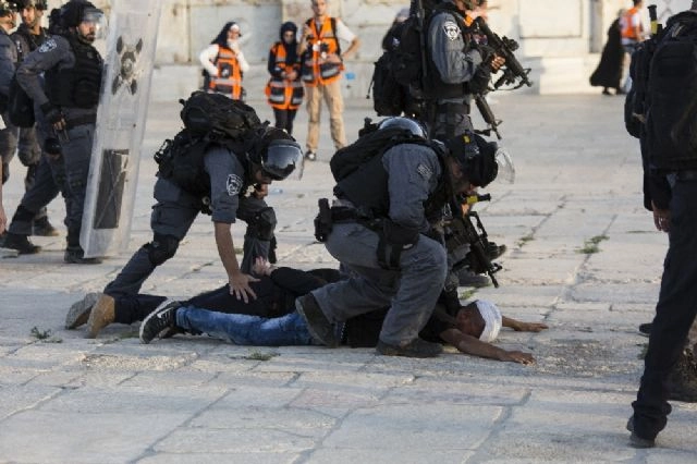 İsrail polisi, Mescidi-i Aksa kapılarındaki elektronik detektörlerin ve kameraların kaldırılmasını kutlayan Filistinlilere ses bombaları ve biber gazlarıyla müdahale ettiği, olayda 113 kişinin yaralandığı bildirildi.İsrail polisi, Mescidi-i Aksa girişlerindeki elektronik detektörlerin ve kameraların kaldırılarak bütün kapıların açılmasını kutlayan Filistinlilere müdahale etti. Görgü tanıkları, İsrail güçlerine ait takviye kuvvetlerinin Mescid-i Aksa'ya ulaştıklarını ve birçok yaralanmaya yol açan ses bombaları ve biber gazıyla ibadet edenlere saldırdıklarını belirtti.İsrail güçleri ve Filistinliler arasında çıkan arbedenin Mescid-i Aksa avlusuna kadar yayıldığı ve caminin çatısına keskin nişancılar konuşlandırıldığı bildirildi.Filistin Kızılay Derneği (PRCS) tarafından yapılan açıklamada, işgalci güçlerin müdahaleleri sırasında Mescid-i Aksa'nın Hutta ve El Esbat kapılarında 113 kişinin yaralandığı ifade edildi.(Muhammed Rabah /İHA)