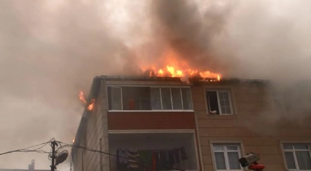 İstanbul Sultanbeyli'de 3 katlı bir binanın çatı katında çıkan yangın korkuttu. Çatıdan yükselen alevlere itfaiye ekipleri müdahale ederken, binada mahsur kalan 2 kişi ise kurtarıldı.