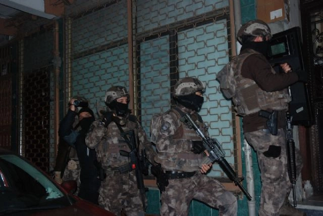 İstanbul Emniyet Müdürlüğüne bağlı Terörle Mücadele Şube Müdürlüğü ekipleri terör örgütü DEAŞ'a yönelik operasyon düzenledi. Kent genelinde çeşitli adreslere yapılan operasyonlarda çok sayıda kişinin gözaltına alındığı öğrenildi. İstanbul Emniyet Müdürlüğü'ne bağlı Terörle Mücadele Şube Müdürlüğü ekipleri terör örgütü DEAŞ'a yönelik gece saatlerinde operasyon düzenledi. Özel harekat ekiplerinde destek verdiği operasyonlarda çok sayıda kişinin gözaltına alındığı öğrenildi. Kent genelinde yapılan operasyonda, Esenler İlçesi, Tuna Mahallesi 663. Sokak'ta bulunan 5 katlı bir binaya giren ekipler, önceden tespit edilen bir dairede şüpheli şahıs ya da şahıslar üzerinde arama yaptı. Aramalar sırasında polis ekipleri bir kişiyi gözaltına aldı. Ekiplerin çevrede geniş güvenlik önlemi aldığı görüldü.(Murat Solak/İHA)