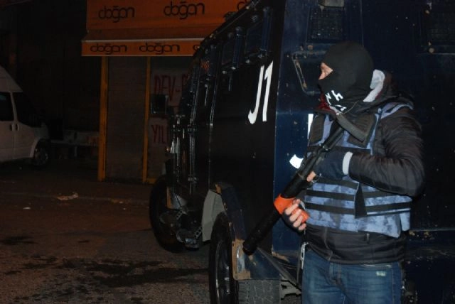 İstanbul Emniyet Müdürlüğü Terörle Mücadele Şube Müdürlüğü ve Özel Harekat Şube Müdürlüğü ekiplerince Okmeydanı'nda DHKP/C doğrultusunda faaliyet gösteren Gençlik Federasyonuna operasyon düzenlendi. Terörle Mücadele Şube Müdürlüğü tarafından düzenlenen operasyona Özel Harekat Şube Müdürlüğü, Çevik Kuvvet Şube Müdürlüğü'nün yanı sıra AFAD ve İtfaiye ekipleri de destek verdi. Gece saat 01.30 sıralarında harekete geçen ekipler Vatan Caddesi'nden konvoy halinde çıkarak operasyon yapılacak adrese doğru harekete geçti. Adrese ulaşan ekipler itfaiye merdiveni yardımıyla operasyon yapılacak adrese giriş yaptı. Özel timlerin kullanmış olduğu koçbaşı yardımıyla çelik kapıların kırılarak girildiği adreste aramalar yapıldı.Operasyon sırasında ekipler çevrede geniş güvenlik önlemi aldı. TOMA ve Akrep adı verilen zırhlı araçlar devriye atarken polis helikopterininde operasyona havadan destek verdiği görüldü.(Oğuzcan Yazar/İHA)