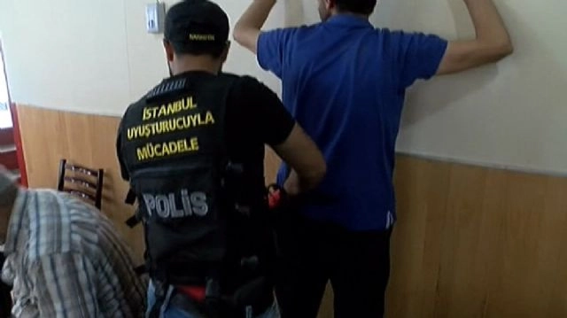İstanbul Narkotik polisi Kağıthane'de özel harekat polislerinin de desteğiyle çok sayıda adrese eş zamanlı operasyon düzenlendi. İstanbul'da son zamanlarda artan uyuşturucu satışı nedeniyle çok sayıda ihbar alan İstanbul Emniyet Müdürlüğü Uyuşturucu ile Mücadele ve Narkotik Suçlarla Mücadele Şube Müdürlüğü'ne bağlı ekipler operasyon için düğmeye bastı. İlçe Güvenlik ve Asayiş Büro Amirliği ekipleri tarafından Kağıthane Gürsel Mahallesi'nde çok sayıda adreste uyuşturucu kullanımı, satımı ve depolandığı bilgisine ulaşıldı. Bunun üzerine harekete geçen yaklaşık 250 polis, öğlen saatlerinde özel harekat polisleri ve polis helikopterinin desteğiyle önceden belirlenen çok sayıda adrese eş zamanlı operasyon düzenlendi. Operasyona Çevik Kuvvet Şube Müdürlüğü ve Önleyici Hizmetler Büro Amirliği'ne bağlı ekipler de destek verdi.KOÇBAŞLARIYLA KAPILAR KIRILDI, ŞÜPHELİLER GÖZALTINA ALINDIOperasyonda polis ekipleri, 28 Nisan Caddesi üzerindeki bir aparta özel harekat polisleriyle baskın düzenledi. Binadaki dairelerde kalanların kapıları açmaması üzerine polis, koçbaşlarıyla kapılarak kırarak içeriye girdi. Burada birçok şüpheli şahıs gözaltına alındı. Öte yandan cadde üzerindeki bir taksi durağına giren ekipler, ruhsatsız olduğu öğrenilen bir silah ele geçirerek, sahibini de gözaltına aldı. Bölgede otomatik silahlarla önlem alan ekipler kuş uçurtmadı. Cadde ve sokaklardaki vatandaşlar ise didik didik arandı.KIRAATHANEYE BASKIN YAPILDI, K-9 KÖPEKLERİ UYUŞTURUCU MADDE BULDUÖte yandan, cadde üzerindeki ara sokakta faaliyet gösteren bir kıraathaneye giren ekipler, çok sayıda şahsı üzerlerini aradıktan sonra gözaltına aldı. Kıraathanede K-9 diye tabir edilen narkotik köpekleriyle de arama yapıldı. Yapılan aramalarda çöp kutularının içerisinde ve duvar deliklerinde saklanmış çok miktarda uyuşturucu madde ele geçirildi.Gözaltına alınan şahıslar ifadeleri alınmak üzere İstanbul Emniyet Müdürlüğü'ne götürülürken, ekiplerin olayla ilgili çalışması sürüyor. (Doğan Can Cesur / İHA)
