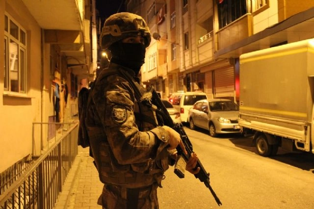 İstanbul'un Esenler ilçesinde haklarında arama kararı bulunan 16 kişiye yönelik 18 adreste eş zamanlı operasyon düzenlendi.Alınan bilgiye göre, İstanbul Emniyet Müdürlüğü Uyuşturucu ile Mücadele Şube Müdürlüğü ekipleri önceden belirlenen Esenler'e bağlı Nene Hatun Mahallesi, Oruç Reis Mahallesi, Turgut Reis Mahallesi, Fevzi Çakmak Mahallesi, Tuna Mahallesi, Fatih Mahallesi ve Namık Kemal Mahallesindeki adreslere şafak vaktinde eş zamanlı operasyon düzenledi.Uyuşturucu ticareti yaptığı iddia edilen ve haklarında arama kararı olan şüphelilere yönelik çalışmalar, polis helikopteri ve Özel Harekat ekiplerinin desteğiyle yürütüldü. Giriş kapıları koçbaşlarıyla kırılan binalarda arama yapan polisler, bu evlerin çatıları ve çevrelerini de kontrol etti.Aramalar sürerken Özel Harekat polisleri çevrede uzun namlulu silahlarla önlem aldı. Öte yandan operasyondaki gözaltı sayısı hakkında bilgi verilmedi.(Ufuk Kıvık/İHA)