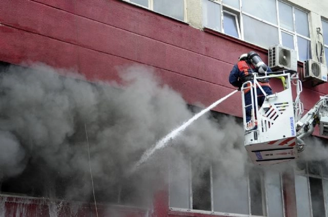 İstanbul Bayrampaşa'daki bir sanayi sitesinde yer alan bir iplik dokuma atölyesinde yangın çıktı. Bayrampaşa Emintaş 2 Sanayi Sitesi'nde bir iplik dokuma atölyesinde bugün sabah saatlerinde yangın çıktı. Yangın paniğe neden olurken, vatandaşların ihbarı üzerine olay yerine çok sayıda itfaiye ekibi sevk edildi. İtfaiye ekipleri iş yerinin camlarını kırarak yangını kısa sürede müdahale altına aldı. Yoğun duman nedeniyle itfaiye ekipleri ara ara zor anlar yaşadı. Uzun süren uğraşlar sonunda söndürülen yangında ölen ya da yaralanan olmazken, iş yerinde maddi hasar meydana geldi.Fabrika işçisi Fahrettin Ünsal, "Biz makine dairesindeydik. Görmedik, orayı bir anda bir baktık ki dumanlar altına aldı. Biz arkada iki kişiydik, arkadaşımızın biri hemen tüplere koyuldu, ben de hemen itfaiyeyi aramaya çalıştım. İçeride kimse yok. Burası tekstil dokuma bölümü" dedi.Öte yandan, fabrikadaki yangın cep telefonu kamerasıyla da kaydedildi. Görüntülerde binadan yükselen alevler ve yaşanan panik görülüyor.(Mehmet Altunışık - Caner Sönmez - Murat Ergin / İHA)