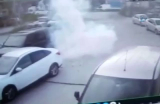 İstanbul Ümraniye Baraj Yolu Caddesi üzerinde maskeli bir kişi, mermer satış bayinin açık otopark kısmına el yapımı patlayıcı attı. Bilyelerle güçlendirilmiş patlayıcının patlama anı kameralar yansıdı.Olay saat 11.00 sıralarında Ümraniye Baraj Yolu Caddesi üzerinde meydana geldi. Edinilen bilgiye ve iddialara göre yüzü maskeli bir kişi mermer satış bayinin açık otopark kısmına bilyelerle güçlendirilmiş el yapımı patlayıcı attı. El yapımı patlayıcı büyük bir gürültüyle patlarken şüpheli şahıs koşarak olay yerinden uzaklaştı.Şahsın yakalanması için polis ekipleri çalışma başlatılırken atılan el yapımı patlayıcının patlama anı kameralara yansıdı. Kameraya yansıyan atılan patlayıcının patlamasıyla dumanların yükseldiği görülüyor. Patlamayla birlikte çevredeki çalışanların panikleyerek koşuştuğu görülüyor.(Metin Başar - Cenk İşver/İHA)
