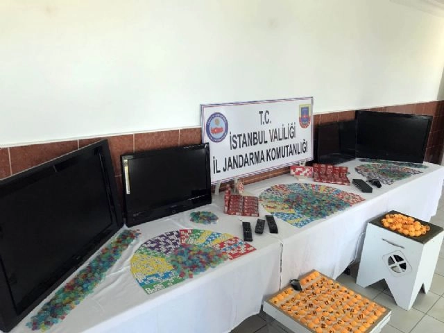 İstanbul İl Jandarma Komutanlığı, 3 ayrı ilçede tespit edilen kumarhanelere eş zamanlı baskın yaptı. Baskınlarda, 9 adet tombala makinesi, 3 adet kamera, 5 adet televizyon, 1 adet kayıt cihazı, yüzlerce tombala kartı ve tombala malzemesi ile elektronik bilet ele geçirildi.