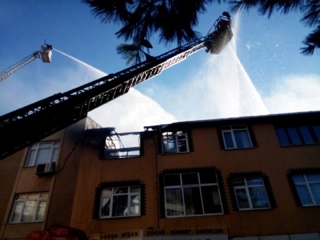 Ataşehir'de bir binanın çatı katında başlayan yangın çevre sakinlerine korku dolu dakikalar yaşatırken, olayda 3 binanın çatısında hasar meydana geldi. Yangına müdahale eden itfaiye erleri zor anlar yaşadı.Edinilen bilgiye göre, Esatpaşa Mahallesi Regaip Sokak içerisinde 2 katlı bir binanın çatı katında henüz bilinmeyen bir nedenle yangın çıktı. Yangın kısa sürede yayılarak çevrede bulunan 2 binanın daha çatısına sıçradı. Olay yerine çok sayıda itfaiye ekibi sevk edilirken, itfaiye toplam 3 binanın çatısına yayılan alevleri söndürmek için büyük mücadele verdi. Söndürme çalışmaları sırasında üzerine parça düşen bir itfaiye eri diğer itfaiye erleri tarafından ambulansa götürüldü. İtfaiye eri ambulansta sağlık kontrolünden geçirildi. Alevler ise itfaiyenin uzun süren uğraşları sonucunda kontrol altına alınarak söndürüldü. Yangında yaralı ve can kaybı yaşanmazken, 3 binada maddi hasar oluştu.(Mustafa Esen/İHA)