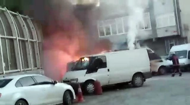 Beyoğlu'nda park halinde bulunan bir otomobilde çıkan yangın 3 aracı kullanılmaz hale getirdi. Alev alev yanan otomobiller, itfaiye ekiplerinin müdahalesiyle söndürüldü. Yangın, saat 17.30 sıralarında Beyoğlu, Keçeci Piri Mahallesi, Dutlu Sokak üzerinde çıktı. İddiaya göre, sokak üzerinde park halinde bulunan otomobilin sürücüsü, lastik değiştirdiği sırada aracından dumanlar çıktığını gördü. Otomobilden dumanlar yükseldiğini gören vatandaşlar durumu itfaiye ekiplerine haber verdi. Otomobilde çıkan yangın park halinde bulunan diğer 2 otomobile de sıçradı. Vatandaşların ihbarı üzerine olay yerine itfaiye ekipleri sevk edildi.Alevlerin sıçradığı minibüste bulunan vatandaşlar ise kendilerini dışarı atarak yangından son anda kurtuldu. Kendini dışarı atarak yanmaktan son anda kurtulan bir kadın ise yaşadığı şok nedeniyle zor anlar yaşadı. Şok geçiren kadını vatandaşlar sakinleştirmeye çalıştı.İhbar üzerine olay yerine gelen itfaiye ekipleri alev alev yanmakta olan otomobilleri söndürerek soğutma çalışması yaptı. Yangın mahalline güvenlik şeridi çekerek önlem alan polis ekipleri olayla ilgili çalışma başlattı. Yaralı ve can kaybının yaşanmadığı yangında 2 otomobil ve 1 minibüs kullanılamaz hale geldi.Park halindeki bir otomobilde çıkarak 2 araca sıçrayan yangında yaşananlar vatandaş kamerası tarafından saniye saniye kaydedildi. Görüntülerde araçların alev alev yandığı görülüyor. Çevrede yaşanan panik anı ise kameralarca kaydediliyor.(Oğuzcan Yazar /İHA)