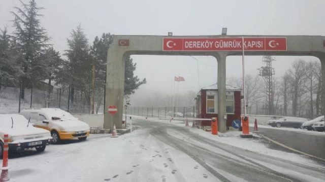 Balkanlardan gelen soğuk hava dalgasının etkisi altındaki Kırklareli'nin yüksek kesimlerinde kar yağışı başladı. Kırklareli'nin Yıldız dağları, Dereköy Sınır Kapısı ve yüksek kesimlerinde kar yağışı etkili olmaya başladı. Bulgaristan'a ulaşımın sağlandığı Dereköy Sınır Kapısı'nda da kar kalınlığı 5 santimetreye ulaştı. Kar yağışıyla birlikte Karayolları ekipleri çalışmalara başladı. Bulgaristan'a ulaşımın sağlandığı Dereköy Sınır Kapısı'nda Karayolları 15. Şube Şefliği ekipleri de kar yağışının etkili olması ile birlikte tuzlama çalışmalarına devam ediyor.(Emre Gülle/İHA)