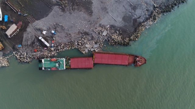 Zonguldak'ın Ereğli ilçesinde şiddetli fırtına sebebiyle karaya oturarak ikiye bölünen kuru yük gemisi havadan görüntülendi.