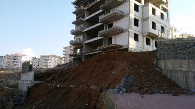 Gaziantep'te inşaat temelinde iş makinesinin çalışması sırasında üst tarafta bulunan binanın istinat duvarı çöktü. Çökme riski nedeniyle çevredeki binalar boşaltıldı.
