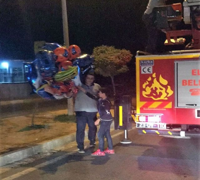 Elazığ'da balon satan engelli vatandaşın elinden uçarak ağacın tepesinde asılı kalan balonlarını itfaiye ekipleri kurtardı. Edinilen bilgiye göre, Olgunlar Mahallesi Atatürk Bulvarında, evine giden fiziksel engelli 51 yaşındaki Zeynel Akgüneş, sattığı balonları elinden kaçırdı. Balonların ipi bu sırada bir ağaca takıldı. Balonlarına ulaşamayan Akgüneş, Elazığ Belediyesi İtfaiye Müdürlüğü'ne bağlı ekiplerden yardım istedi. Olay yerine gelen itfaiye ekipleri, ağaçta takılı kalan balonları aracın merdivenini uzatarak alıp, sahibine teslim etti.6 aylıkken yanlış iğne sonucu fiziksel engelli kalan 51 yaşındaki engelli balon satıcısı Zeynel Akgüneş, akşamları düğün salonlarının önünde ve parklarda balon sattığını belirtti. Gece eve gelirken balonlarının elinden uçup ağaca takıldığını aktaran Akgüneş, "Çaresiz kalınca itfaiyeyi aradım. itfaiye ekipleri geldi ve ağaçtan balonlarımı kurtardı. Ben ayağımdan engelliyim. Küçükken yanlış iğne vurmuşlar ondan dolayı olmuş. Engelli olduğum için ağır işlerde çalışamıyorum. Bende balon ve oyuncak gibi işlerde çalışarak geçimimi sağlamaya çalışıyorum" dedi.(Yunus Özhanlı /İHA)