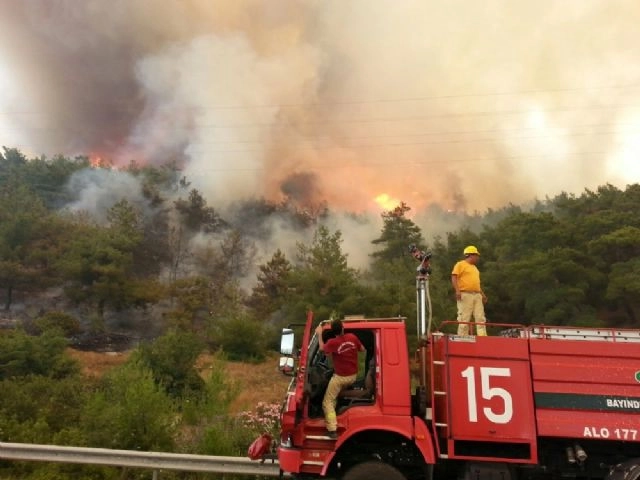 İzmir'in Menderes ilçesinde ormanlık alanda çıkan yangında 26 saat geride kalırken, yangının çıkış noktasında araştırma yapan ekipler, içki şişesine rastladı.İzmir'de dün öğle saatlerinde çıkan yangında 26 saat geride kalırken, 500 hektardan fazla ormanlık alan da adeta kül oldu. Jandarma ekipleri, yangının çıkış noktası olan Deliömerli köyü yakınlarındaki ormanlık alanda yaptığı incelemelerde içki şişesi buldu. Yangının çıkış nedenini araştıran ekiplerin bulduğu içki şişesinin mercek görevi görerek, güneş ışınlarını yansıttığı ve kuru otları tutuşturmuş olabileceği düşünülüyor.Öte yandan, yakın illerden Orman Genel Müdürlüğüne bağlı ekipler de İzmir'e gelmeye devam ediyor. İlçe belediyelerine ait su tankerleri de arazözlere su takviyesinde bulunuyor.(Hakan Gözalan - Sinan Yeniçeri / İHA)