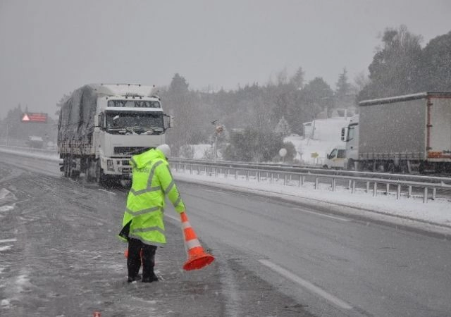 İzmir-Manisa karayolu Sabuncubeli rampasında yoğun kar yağışı devam ederken karayolları ekipleri yolun kapanmaması için çalışmalarına tüm hızıyla devam ediyor.Yurt genelinde devam eden kar yağışı, İzmir-Manisa arasında da gece saatlerinde başladı. Tipi şeklinde devam eden yoğun kar yağışı, İzmir-Manisa karayolu Sabuncubeli rampasında yolu kapanma noktasına getirdi. Karayollarına bağlı tuzlama ve kürüme ekipleri, aralıksız çalışarak yolun kapanmaması için mücadele ediyor.İzmir'den Manisa'ya giden sürücülerden Şafak Özcan, yol kenarına çektiği aracına zincir taktı. Yolların karla kaplanmaya başladığını söyleyen Özcan, 'Önlemimi önceden alıp, yolda kalmadan önce zincirimi takıyorum' dedi. Bir diğer sürücü Hamza Çelik ise yolun kenarına aracını bırakarak yanındaki arkadaşı ile karın keyfini çıkarıp fotoğraf çektirdi.Şu an itibari ile İzmir-Manisa karayolu açık durumdayken yoğun kar yağışı devam ediyor.Kent merkezine de kar yağdıÖte yandan, İzmir'de gece başlayan kar yağışı yüksek kesimlerde etkili oldu. Kar yağışı kent merkezinde de görülürken güne kar yağışı ile başlayan İzmirliler, kar sevinci yaşadı.